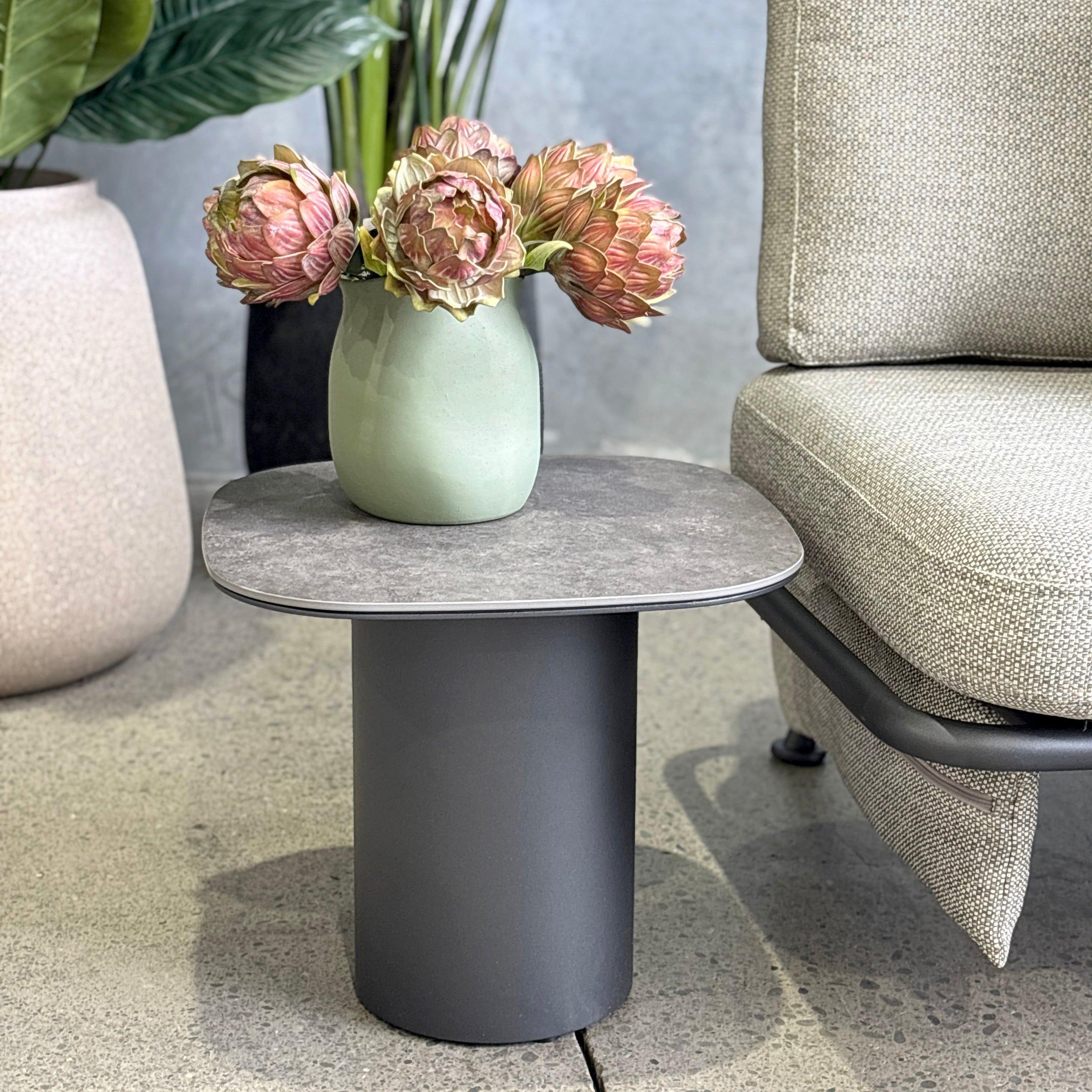 In Charcoal finish with Graphite ceramic top – to match with the Sunset Lounger Sofa, Orlando Sofa and Orlando Modular.