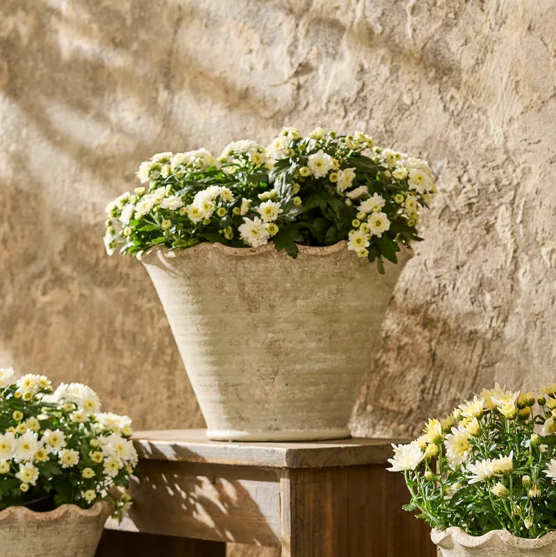 The Wavy Planter adds a touch of charm to your living space. With its scallopped edge and pale colour mix them up with other pots for an eclectic potted mix.