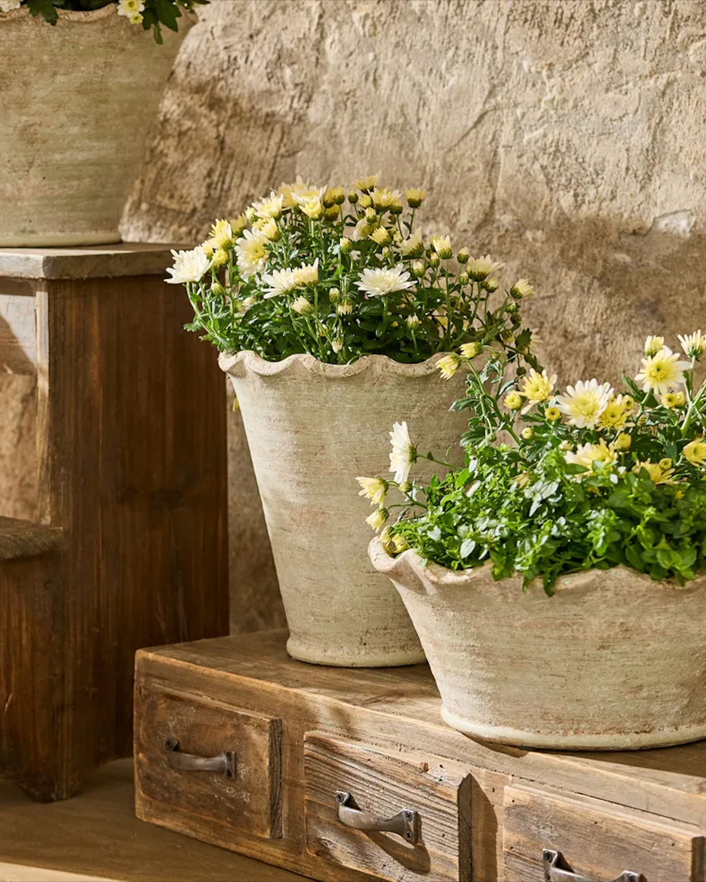 Bring organic elegance to your home with this Wavy Vase. Its distinctive scalloped edges and soft, neutral palette create visual interest on shelves, windowsills, or side tables. Mix and match with complementary planters to craft a curated, eclectic display that reflects your personal style.