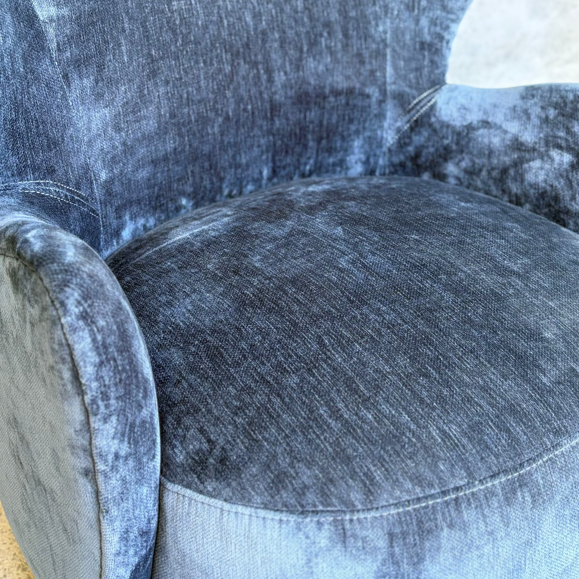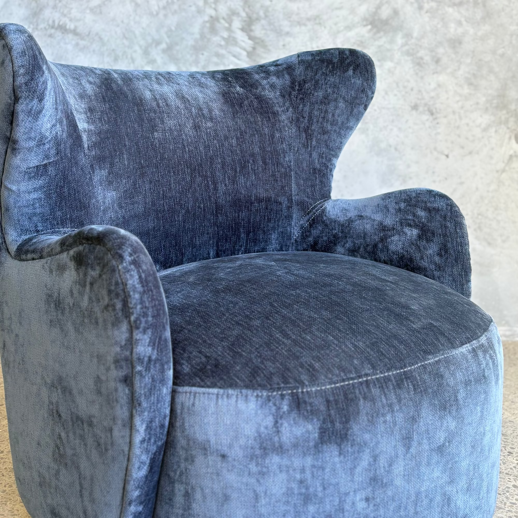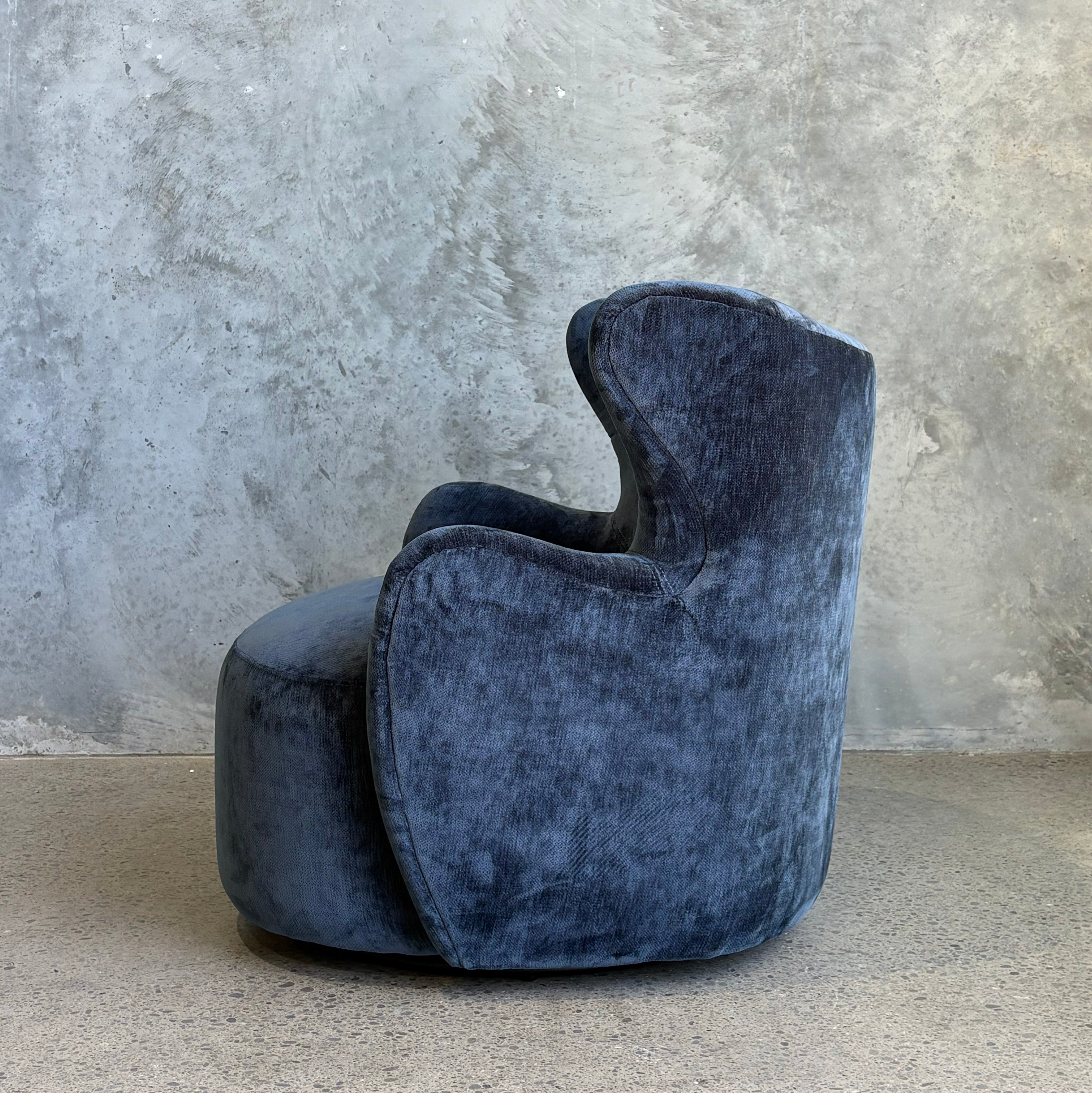 Petite perfection – introducing the Wing Swivel Chair. Taking inspiration from mid-century modern design, the Wing features a modernist take on the traditional wingback shape with a curved round silhouette, finished in a luxurious textured velvet in a stunning blue.