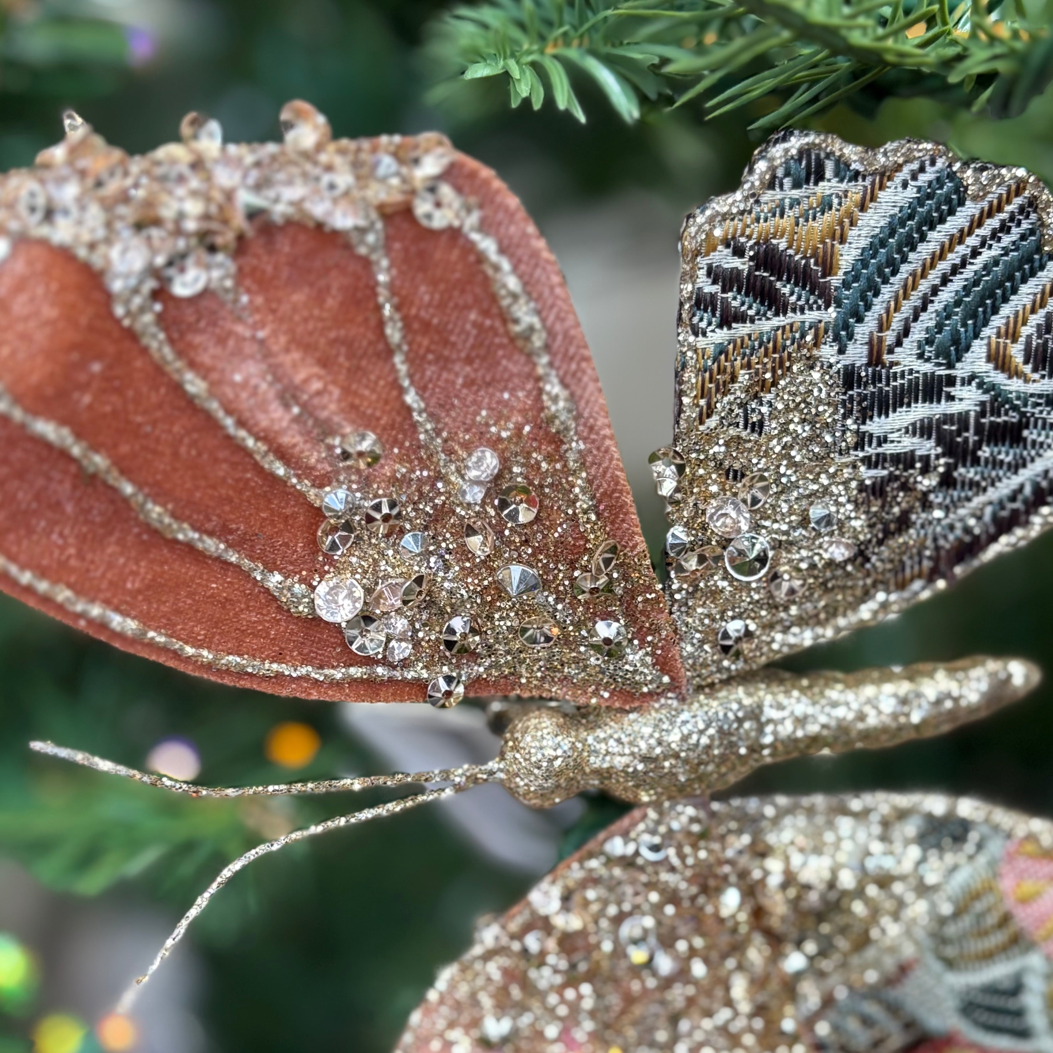 Elevate your festive decor with this enchanting Woodland Butterfly Clip Decoration. Crafted from shimmering glitter-adorned fabric, each piece is wonderfully unique, making it a one-of-a-kind addition to your Christmas display. A charming accent that celebrates individuality and seasonal style.